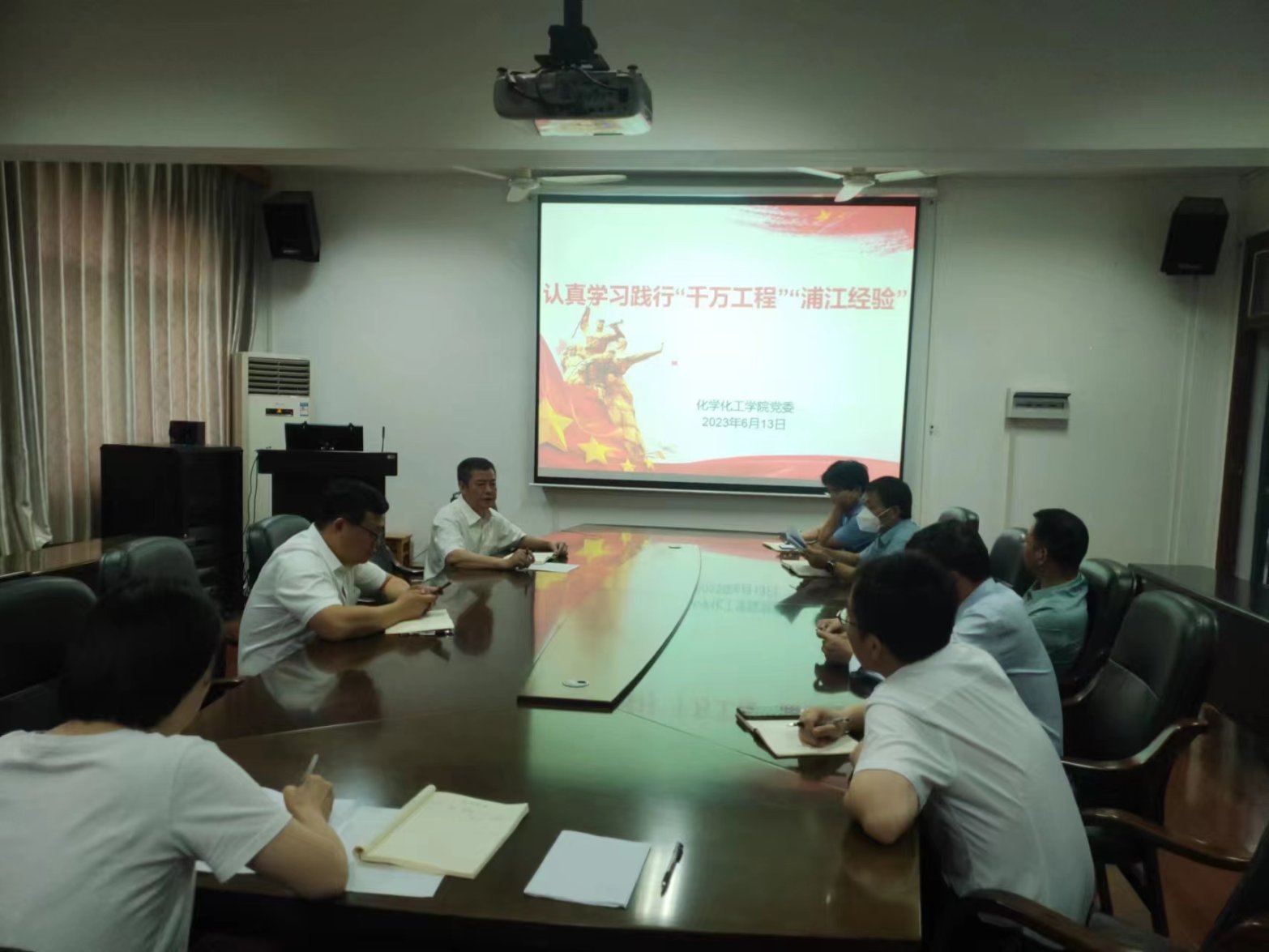 6月13日上午,化学化工公司党委理论学习中心组在化工楼310会议室举行认真学习践行“千万工程”“浦江经验”专题集中学习,公司党委书记周文革主持。