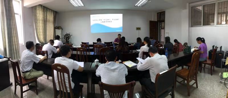9月25日,化学化工公司党委在化工楼312会议室召开“不忘初心、牢记使命”主题教育推进会,会议由公司党委书记曾荣今教授主持,全院处级以上领导干部、教职工党支部书记、员工党支部书记参加。