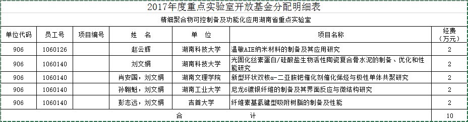 您所在的位置: 首页» 精细聚合物可控制备及功能应用湖南省重点实验室» 学术交流» 开放课题