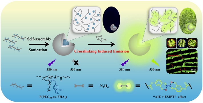Rou Zou, You Yu, Heru Pan, Peisheng Zhang, Fenmin Cheng, Chonghua Zhang, Shu Chen, Jian Chen,and Rongjin Zeng. Cross-Linking Induced Emission of Polymer Micelles for HighContrast Visualization Level 3 Details of Latent Fingerprints. ACS Appl. Mater. Interfaces 2022, 14, 16746-16754.