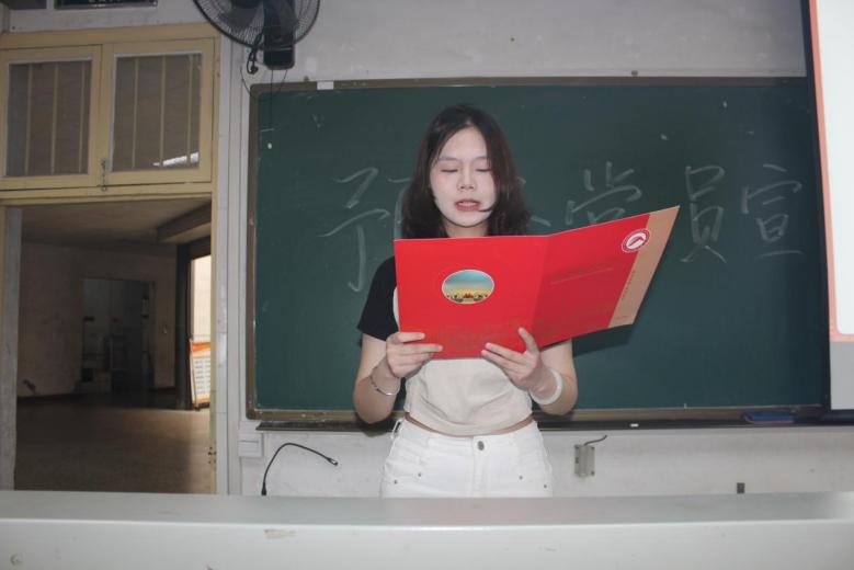 在正式党员代表赵孟然同志的带领下,全体预备党员面向鲜红党旗,紧握右拳,庄严宣誓:“我志愿加入中国共产党……”。铿锵有力的誓言响彻会场,表达了新党员对党的无限忠诚和为共产主义奋斗终身的坚定信念。
