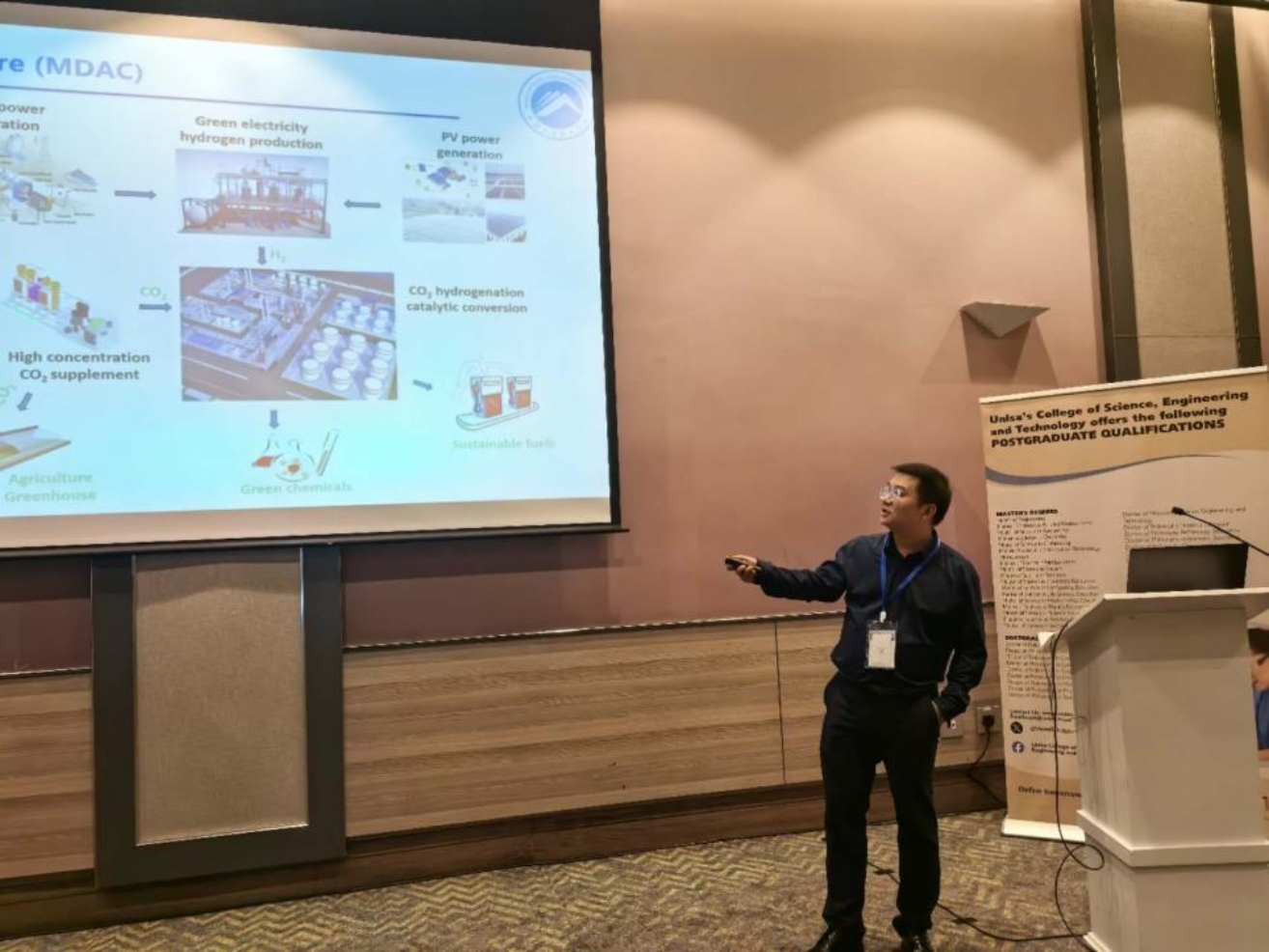 汪靖伦副经理和张宇晟博士受邀代表太阳集团tyc539分别作了“Design and Application of Novel Fluorinated Nitrile Electrolyte Materials”和“Mobile Public Transportation System Direct Air Carbon Capture”的学术报告,周再春教授作了“Semiconductor effect of Pd(II) porphyrin in photocatalytic dealkylation”的墙报展示。