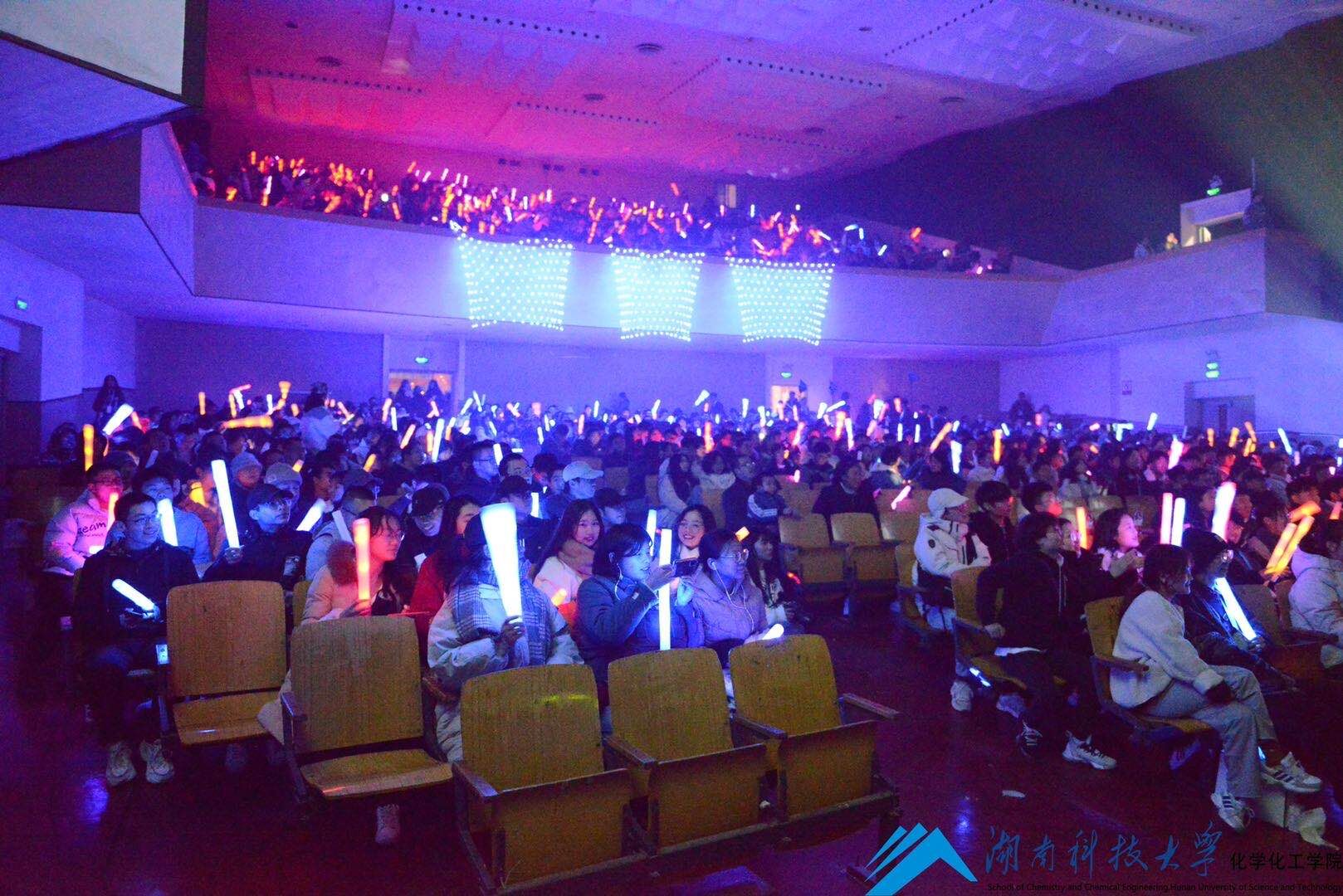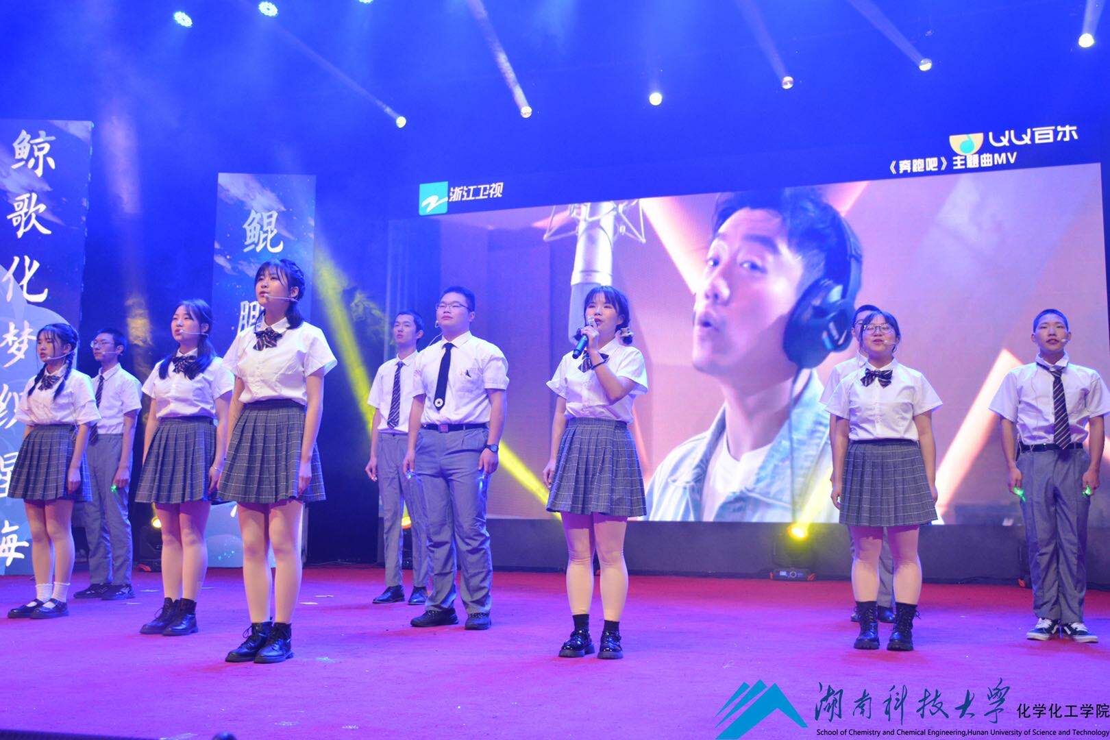 歌曲《返老还童+OAOA》欢快的节奏让现场互动尖叫声不断。声乐组带来的歌曲串烧活力四射,让在场的观众在青春的氛围中感受到迎接大学新生活的力量。而教官们准备的VCR以及他们共同演唱的《逆战》更是燃爆全场,在场的同学们掌声雷动,欢呼雀跃,纷纷挥舞着手中的荧光棒为自己的教官打call。在谢幕歌曲《造亿万吨光芒》的精彩演绎中,本次晚会圆满落幕。