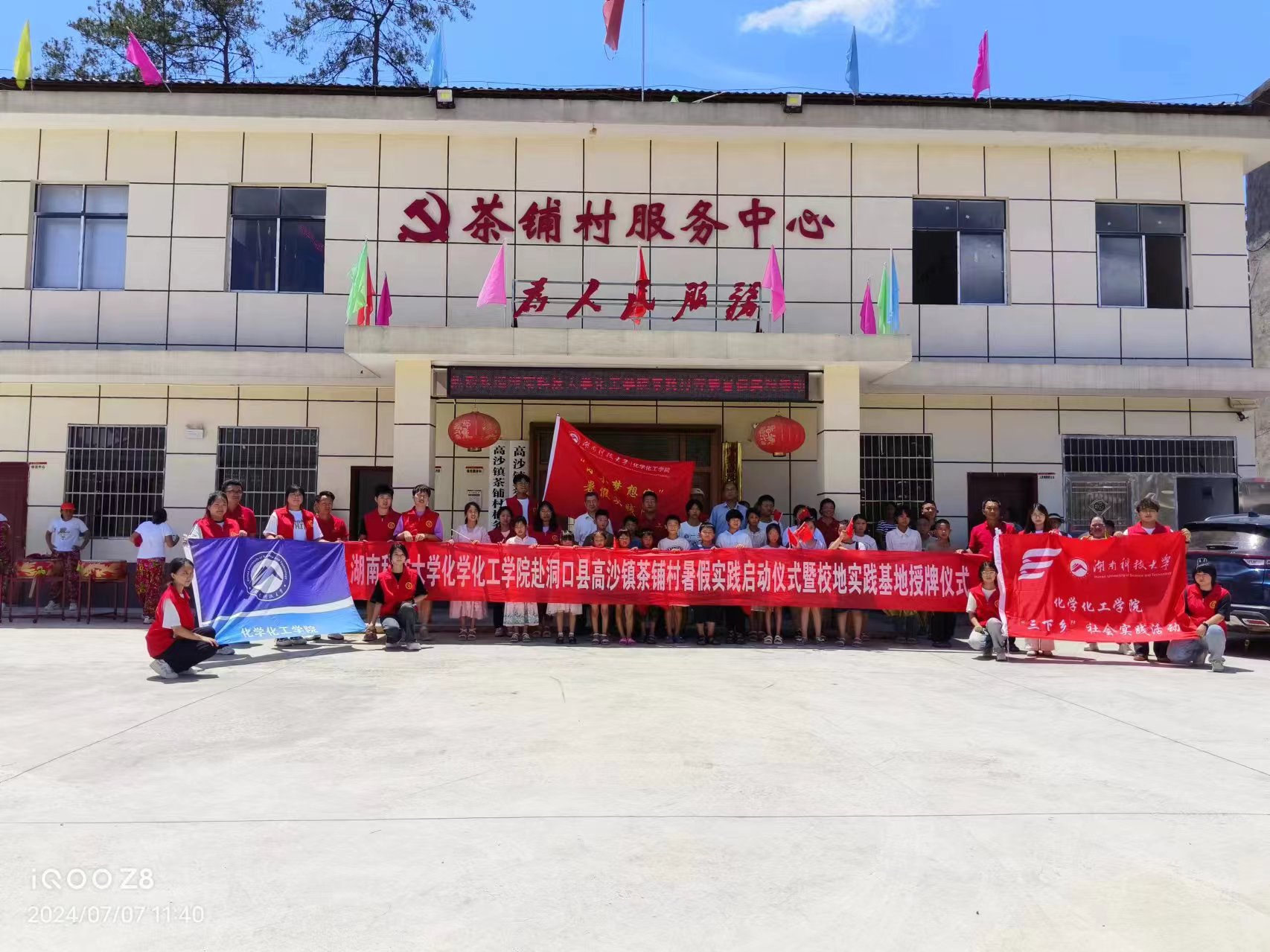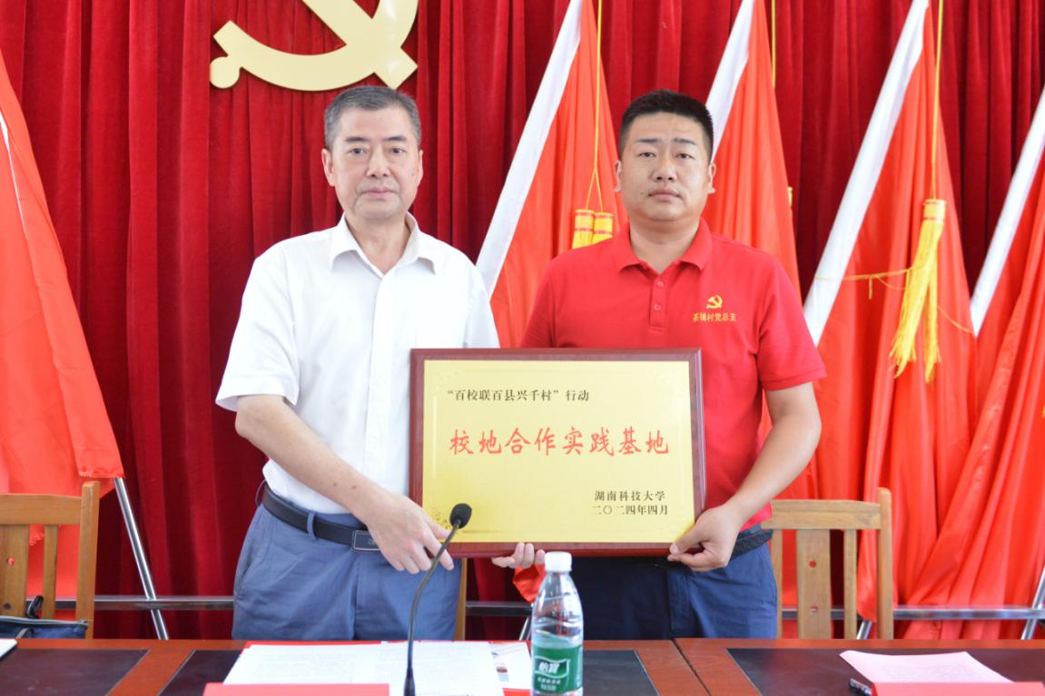 7月7日中午,太阳集团tyc539暑假实践启动仪式暨校地合作实践基地授牌仪式在邵阳市洞口县高沙镇茶铺村党员活动室成功举办。洞口县高沙镇党委副书记曾军、化学化工公司党委书记周文革、茶铺村党总支书记罗君及村委会干部、科技小院指导老师薛建荣、“小小梦想家”实践团指导老师王彪出席本次仪式。