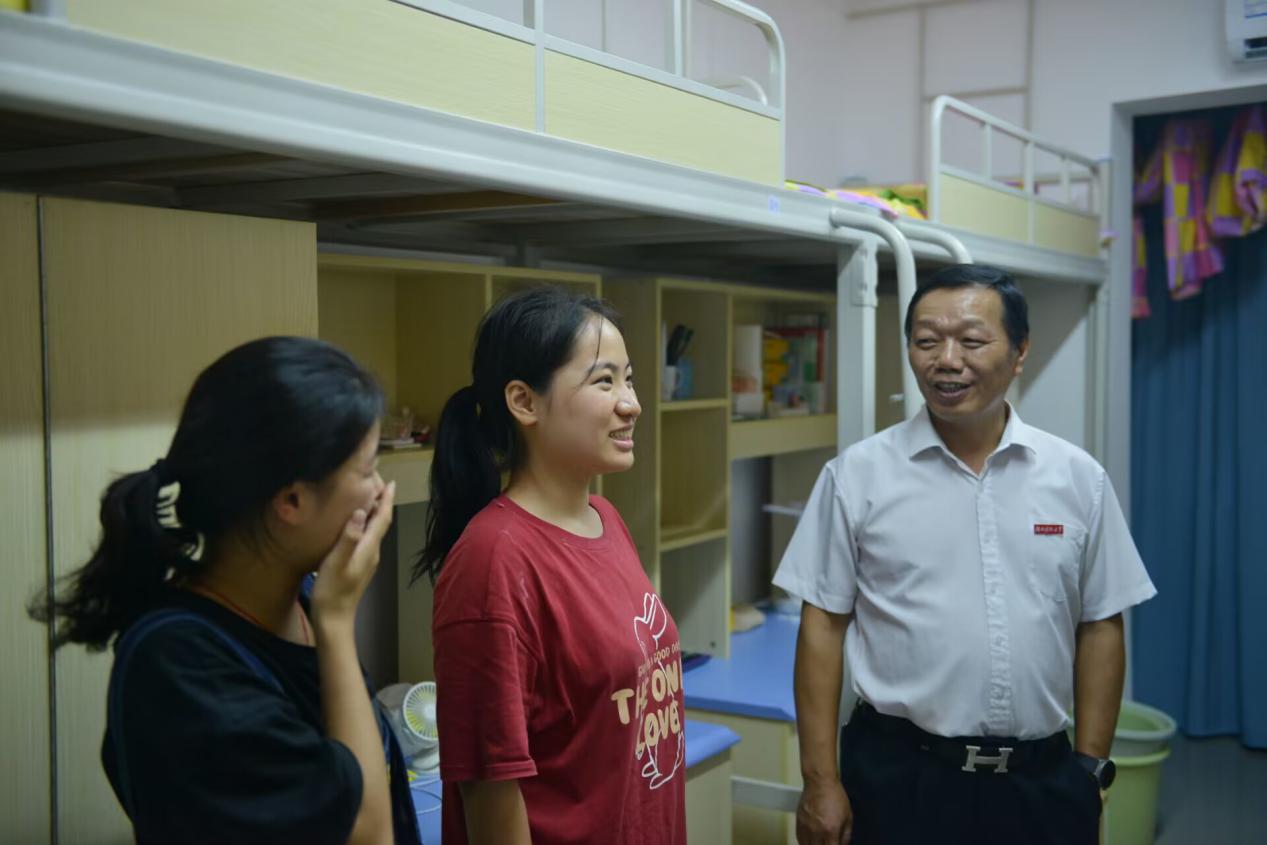 走进新生宿舍,领导老师对新生的到来表示热烈欢迎和亲切问候。走访中,院领导就员工宿舍环境、饮食问题、安全问题以及寝室卫生等方面进行亲切交谈,嘱托同学间要互相照顾,营造一个良好的宿舍氛围。
