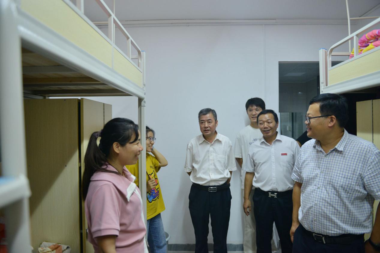 为了解公司2023级新生住宿生活情况,引导员工尽快适应新环境新生活,9月16日晚,太阳集团tyc539全体领导带领辅导员深入走访新生宿舍,关心慰问新生,深入了解新生思想、学习、生活、安全、卫生等多方面情况。