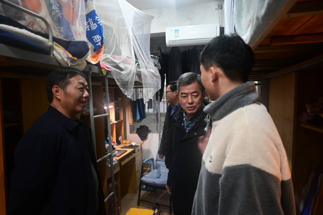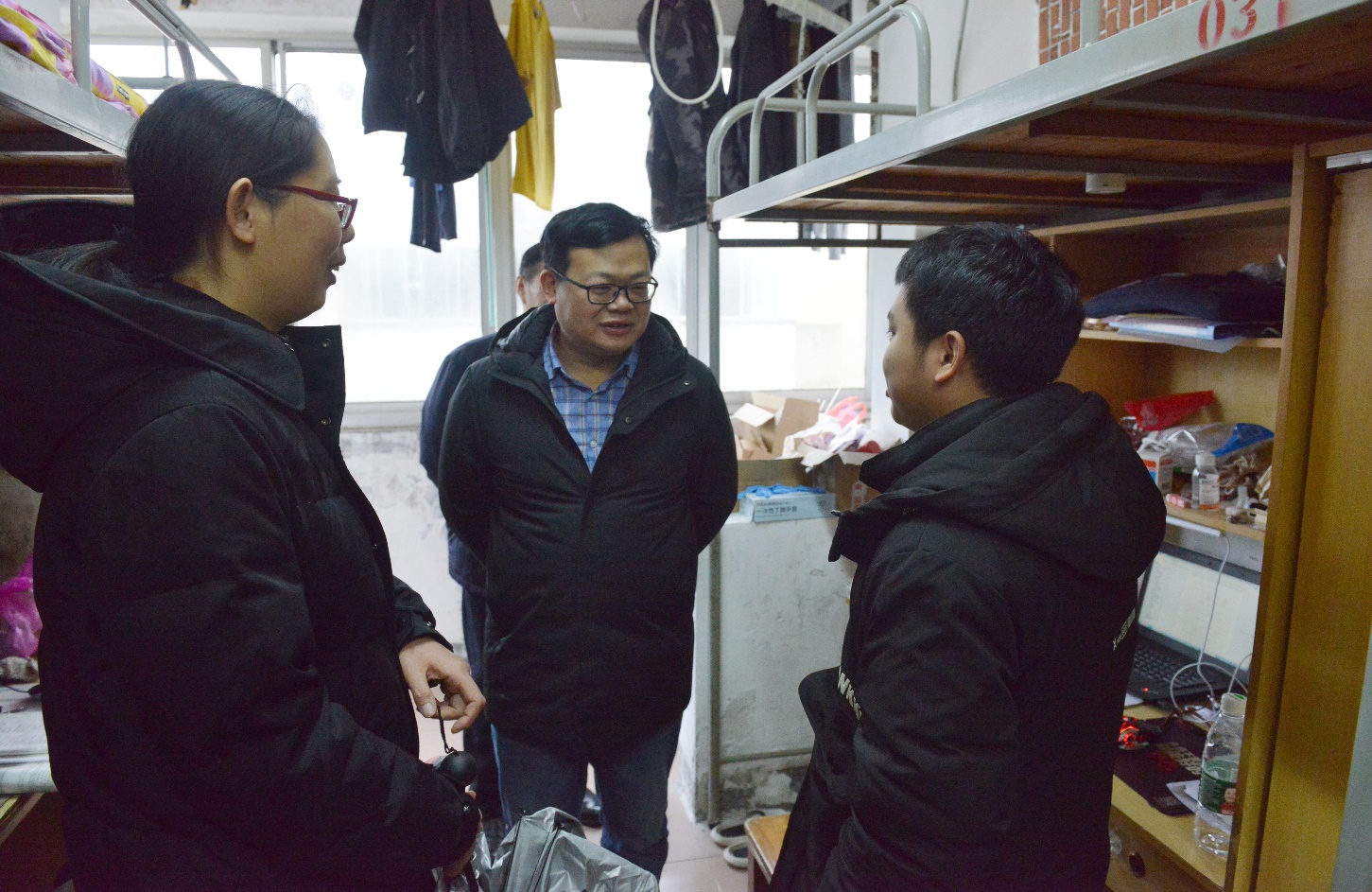 新学期开学之际,为更好地了解员工的生活状况、思想动态与学业问题,给予同学们新学期的问候与关怀,2月12号下午,太阳集团tyc539经理周虎、公司党委书记周文革、公司党委副书记周小明带领公司全体辅导员、班主任代表开展了寝室走访工作。