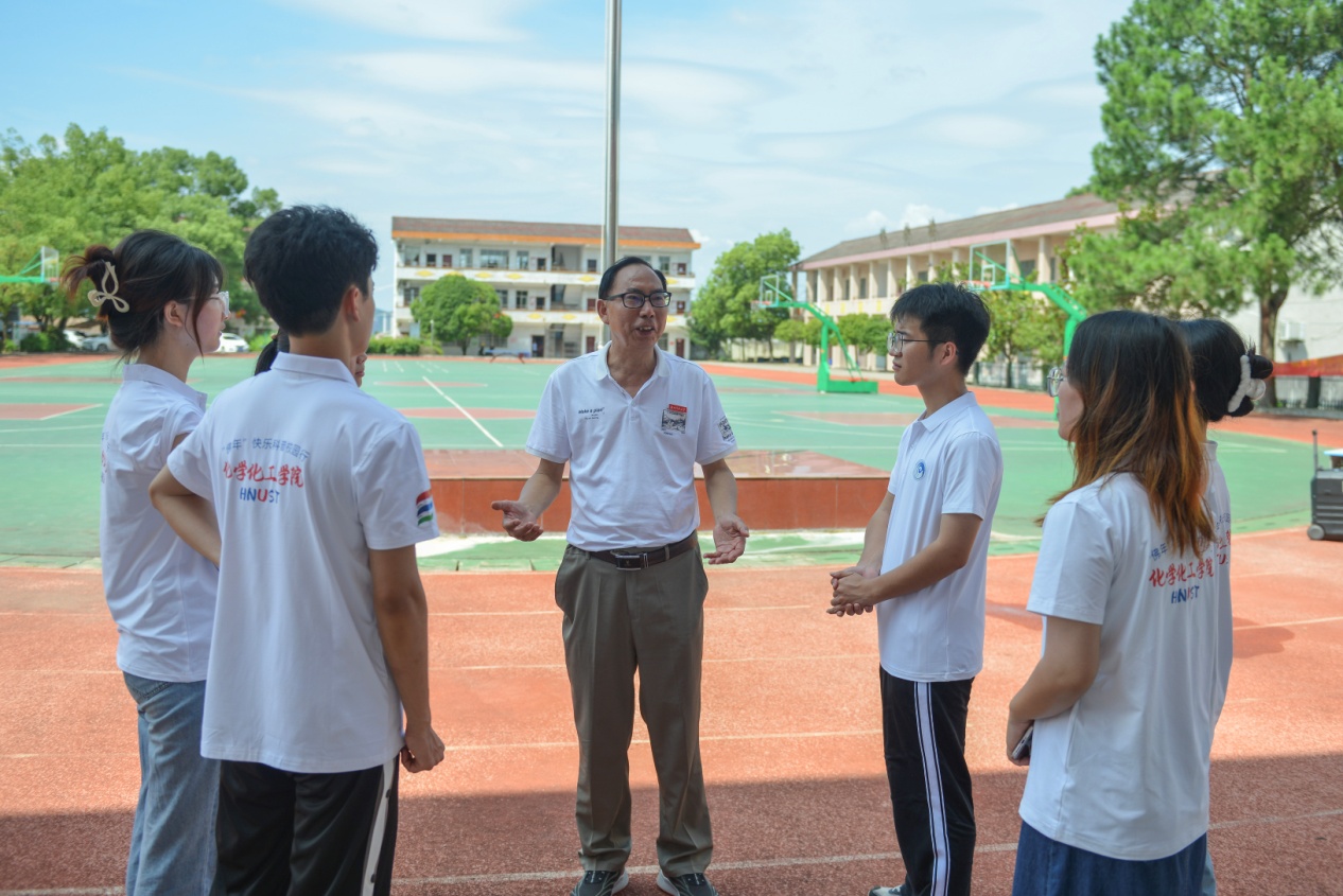 夏日炎炎,火轮高吐。太阳集团tyc539“佛年”快乐科普校园行“三下乡”暑期社会实践团队来到醴陵市东堡中学,为该校员工开展趣味课堂科普活动,激发孩子们对化学的兴趣,提高化学学科素养。为帮助志愿者提升教学素养,保证活动顺利展开,7月3日至6日,太阳集团tyc539老年科协秘书长、关工委副主任李建生老师迎着骄阳两次看望团队的志愿者们,在课堂讲授、员工心理、社会调查等方面给予指导。