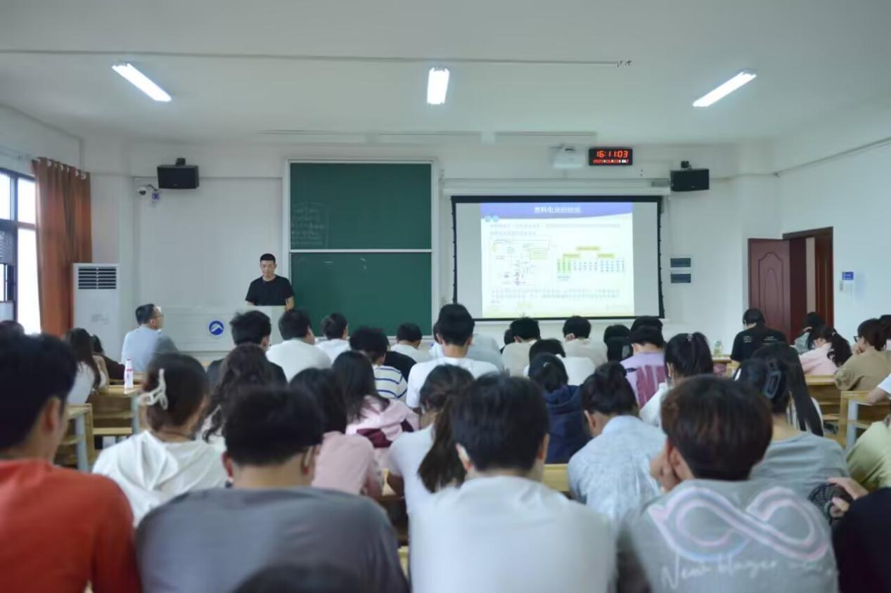 “市场上的双极板产品买回来可以直接装配电池使用吗——不能!”李广老师围绕燃料电池的结构与工作原理展开系统讲解,课程内容涵盖燃料电池的基本构成、影响其性能均一性的关键因素,并深入探讨了燃料电池的应用领域与市场发展前景。李广老师还介绍了燃料电池的发展历史及当前前沿研究进展。其精彩的讲授内容激发了在场师生的浓厚兴趣,大家专注聆听,认真记录。