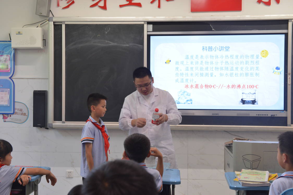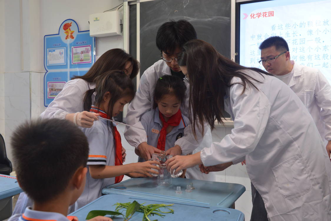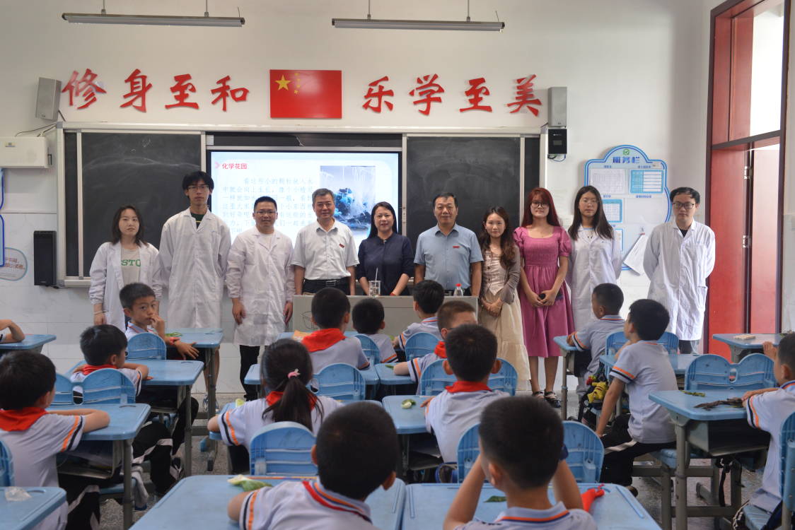 为进一步增强学科专业服务社会能力,提高孩子们科学知识学习兴趣,6月7日下午,太阳集团tyc539师生志愿者来到九华和平科大小学2103班开展了“魅力化学零距离,科普活动进小学”科普活动。化学化工公司党委书记周文革、党委副书记周小明、九华和平科大小学李莉董事长和2013班宋倩老师等莅临活动现场,曹佳民副教授带队进行指导。
