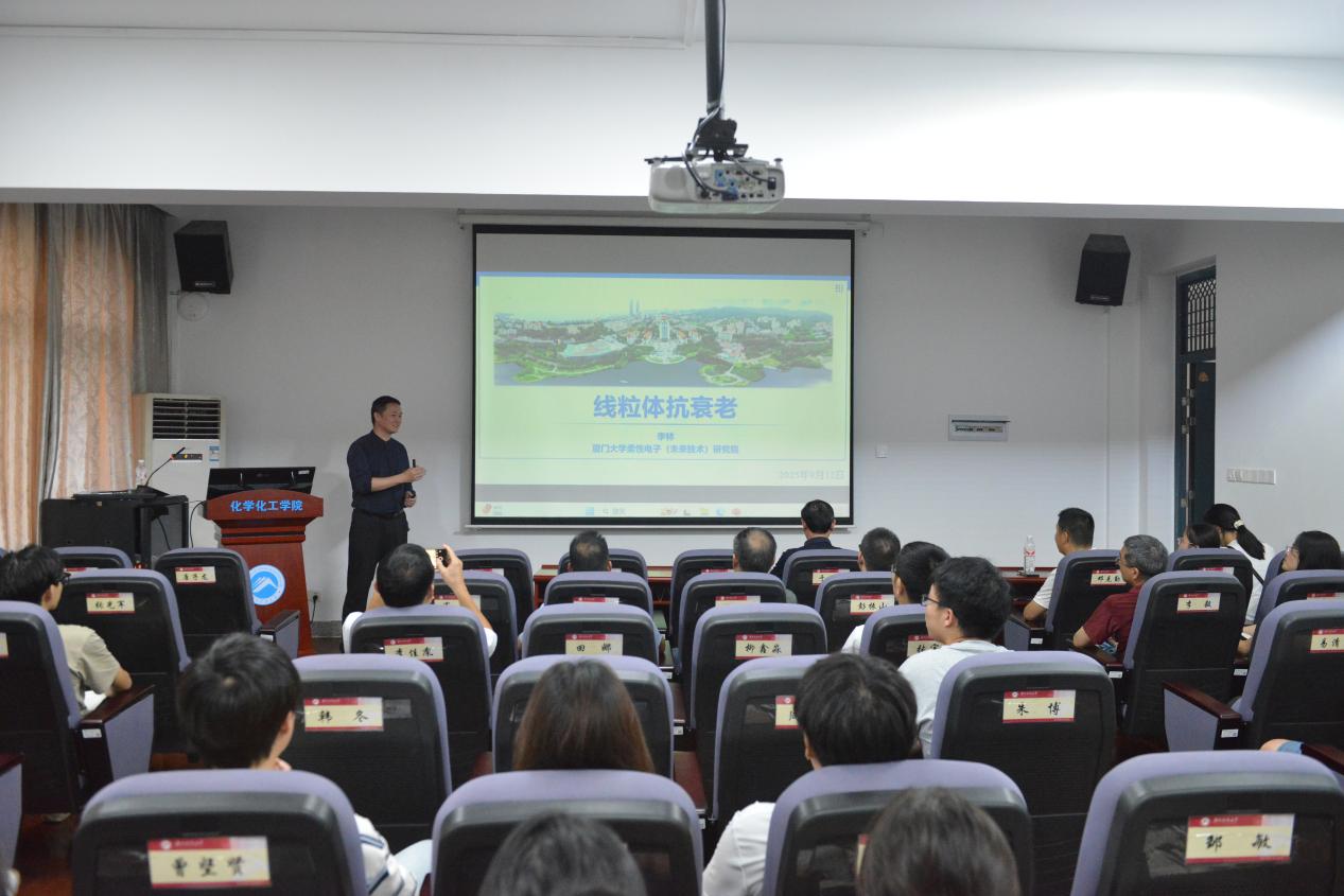 9月12日上午,太阳集团tyc539和理论有机化学与功能分子教育部重点实验室在化工楼310学术报告厅联合举办了《线粒体抗衰老》学术报告会。此次学术报告会由厦门大学教授、国家级青年人才李林主讲,理论有机化学与功能分子教育部重点实验室主任唐子龙主持,公司部分师生代表与会。