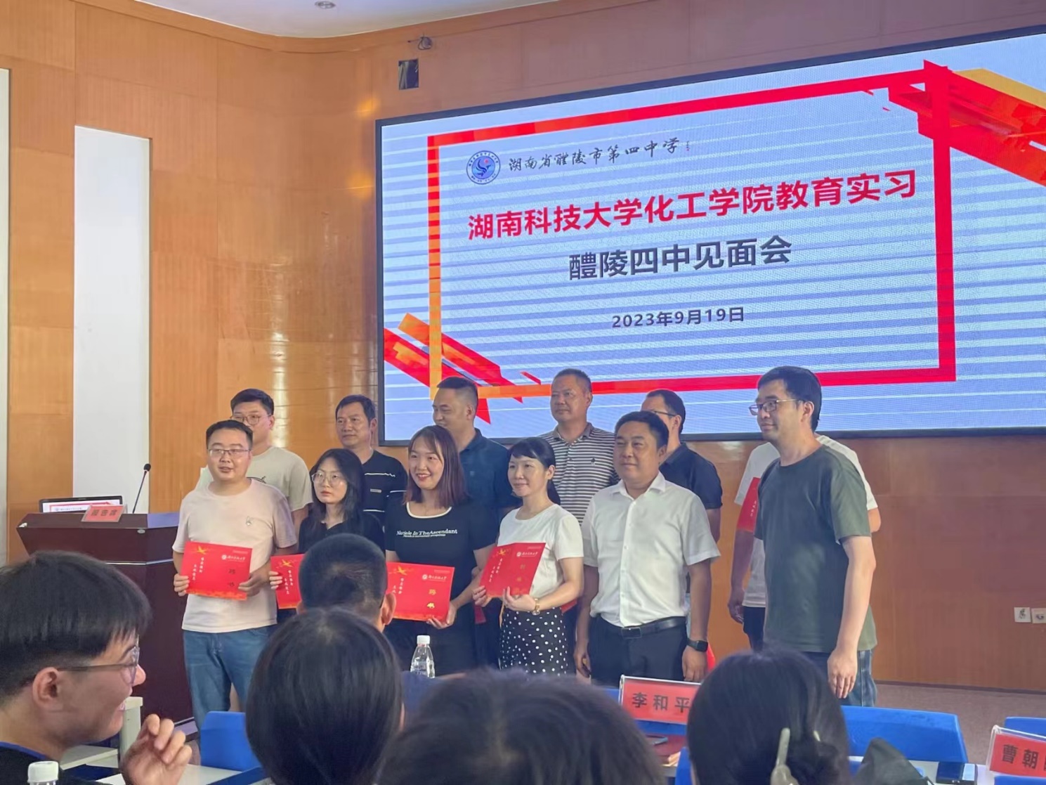 醴陵四中董事长彭林和科大指导教师曹朝暾为班主任及实习指导老师颁发聘书