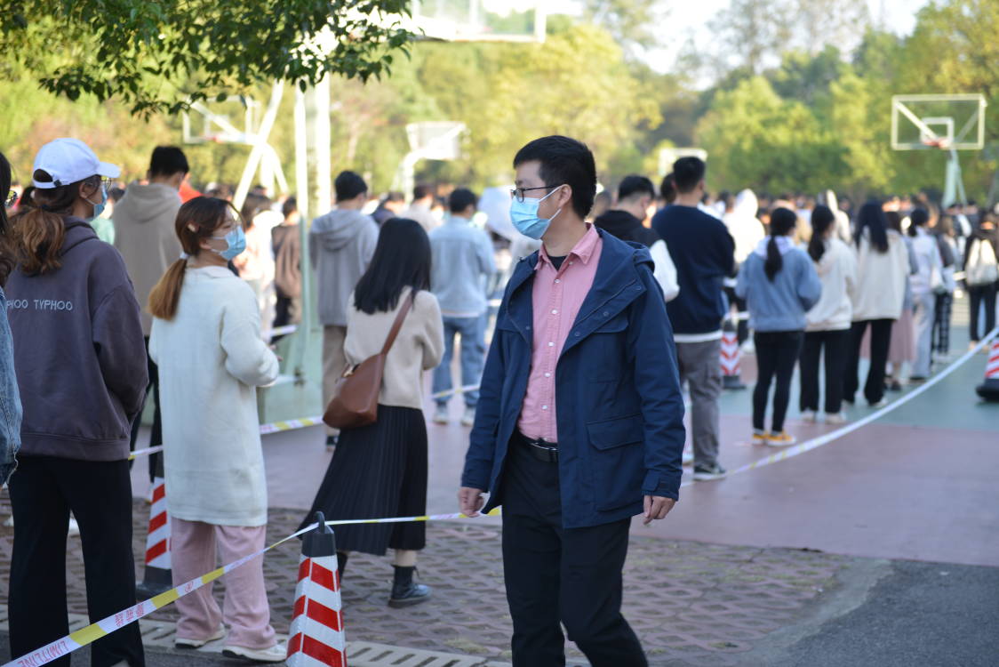 旭日东升,第一田径场的地面上洒满和煦的阳光,公司学子正有条不紊地排队候场进行核酸采样。公司党委副书记周小明来到采样现场,指导同学们的核酸采样工作。他与同学们亲切交谈,叮嘱同学们疫情之下不仅要做好个人防范措施,也要保持良好的心态,养成良好的生活习惯和规律的生活作息,支持公司的防疫工作。