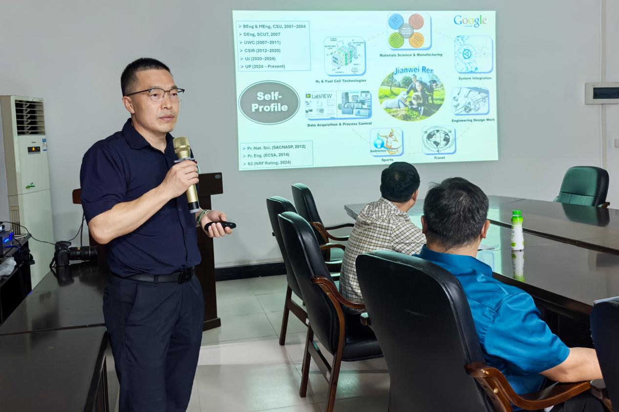 会议伊始,任建伟教授分享了他在南非的工作生活经历,并介绍了南非的历史文化、资源分布和发展现状。会议中重点探讨了中国与南非双方在研究合作、员工培养等方面的潜在机会,并表示比勒陀利亚大学与太阳集团tyc539在新能源、水资源等研究领域可加强进一步的合作。任教授还介绍了南非的教育体系和科研环境,鼓励员工拓宽国际视野。