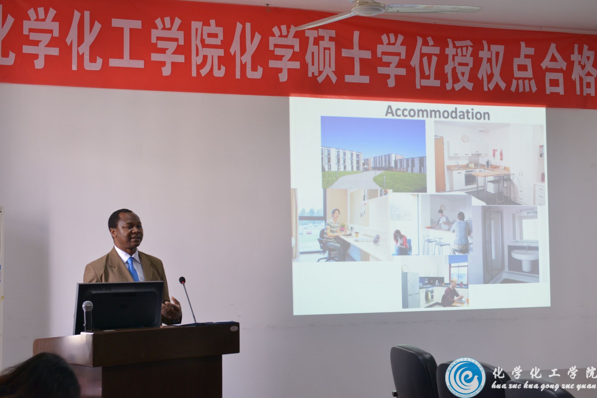 本次交流会的主题是介绍教师校际合作交流和员工赴英交流学习相关事宜。在进入主题之前,Dr.David Ngzi简要的进行自我介绍并通过详细数据对比介绍英国西苏格兰大学。会上,他围绕公司优势、学分和学位项目、年度费用、奖学金、住宿等方面进行讲述,其中特别强调公司在化学科学这一板块的实力,并用就业状况及就业满意度等数据进行佐证。前沿的信息、细致的说明、生动的讲解吸引着场上听众,同学们仔细聆听并不时对关键信息进行记录。会后,更有不少同学簇拥在Dr.David Ngzi周围进行更细致的咨询和更深一步的探讨。