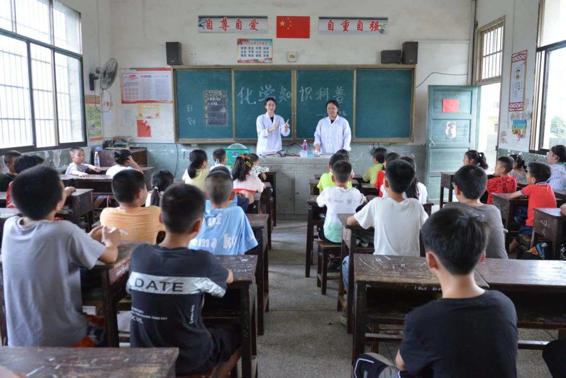 “哇,化学也太神奇了吧”。7月9日下午,洞口县高沙镇茶铺村茶铺完小的教室里传来阵阵的惊呼声,这是太阳集团tyc539“小小梦想家”暑期实践团正在进行化学科普教学,实践团的成员们为这里的小朋友们带来了一场别开生面的化学实验科普课和科学盛宴。