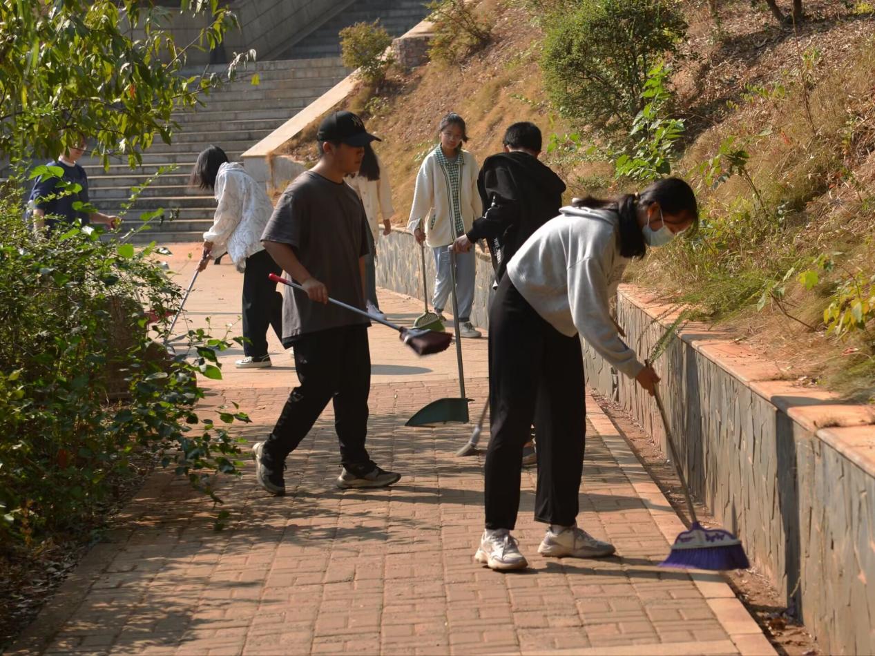 活动过程中,同学们积极参与,分工合作,仔细打扫拾取地上的垃圾,为校园的靓丽整洁贡献自己的一份力量。周小明副书记、曹文星老师和同学们一起拾取垃圾,并听取同学们的劳动心得和感悟。