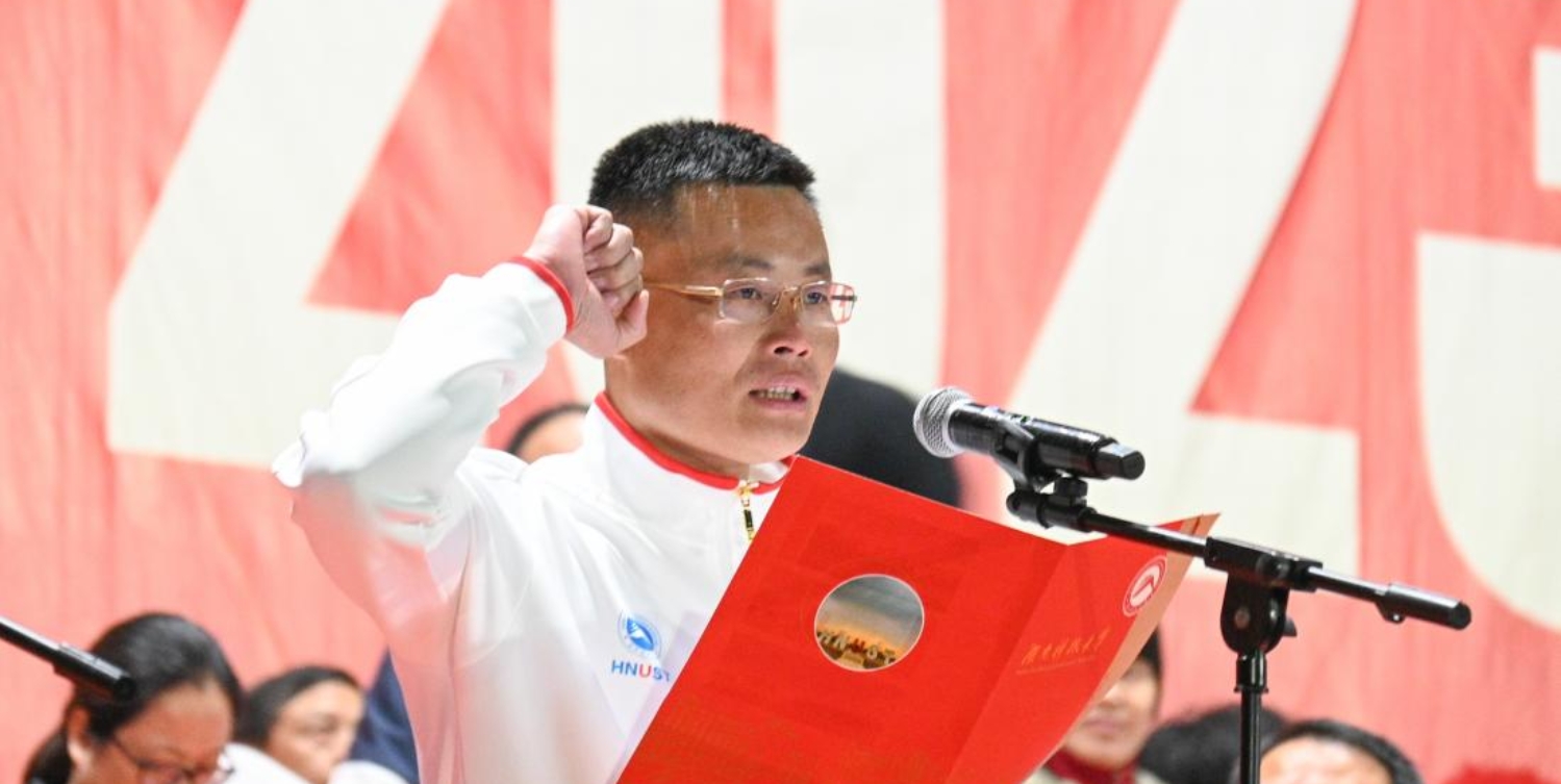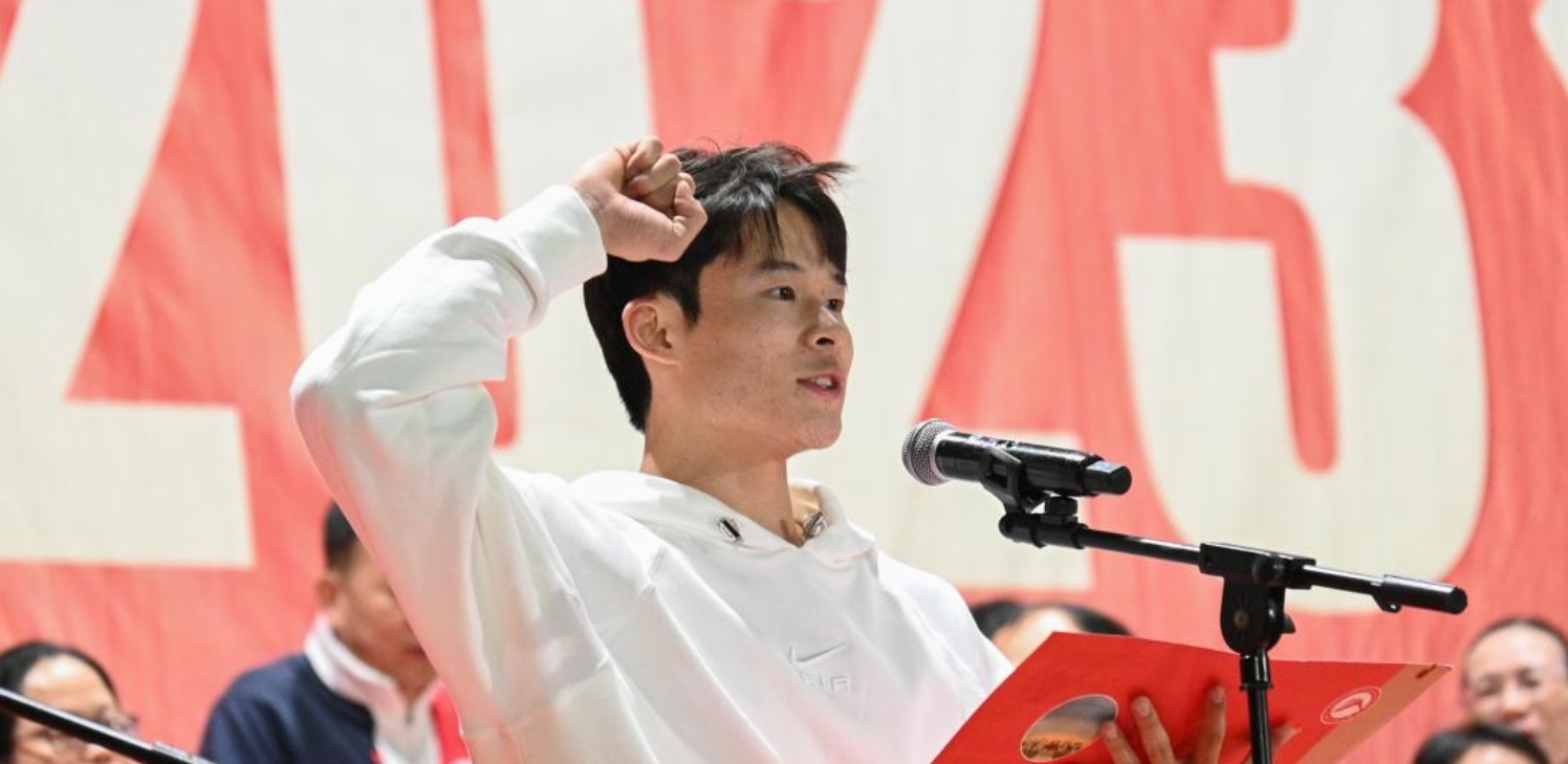 运动员代表夏洪瑶、裁判员代表王鹏先后宣誓。铿锵庄重的誓言展现了他们对运动会的重视与公正。