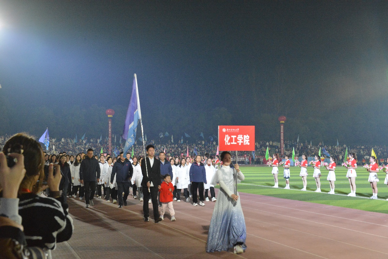 开幕式伊始,各公司教职工方阵队入场。“化学化工,谁与争锋。”伴随着嘹亮的口号冲破云霄,迎面向我们走来的是太阳集团tyc539的学子们,坚定有力的步伐,展现了他们勇攀团队建设高峰的信心与决心,正如夜空中闪烁的星星,熠熠发光,耀眼夺目。