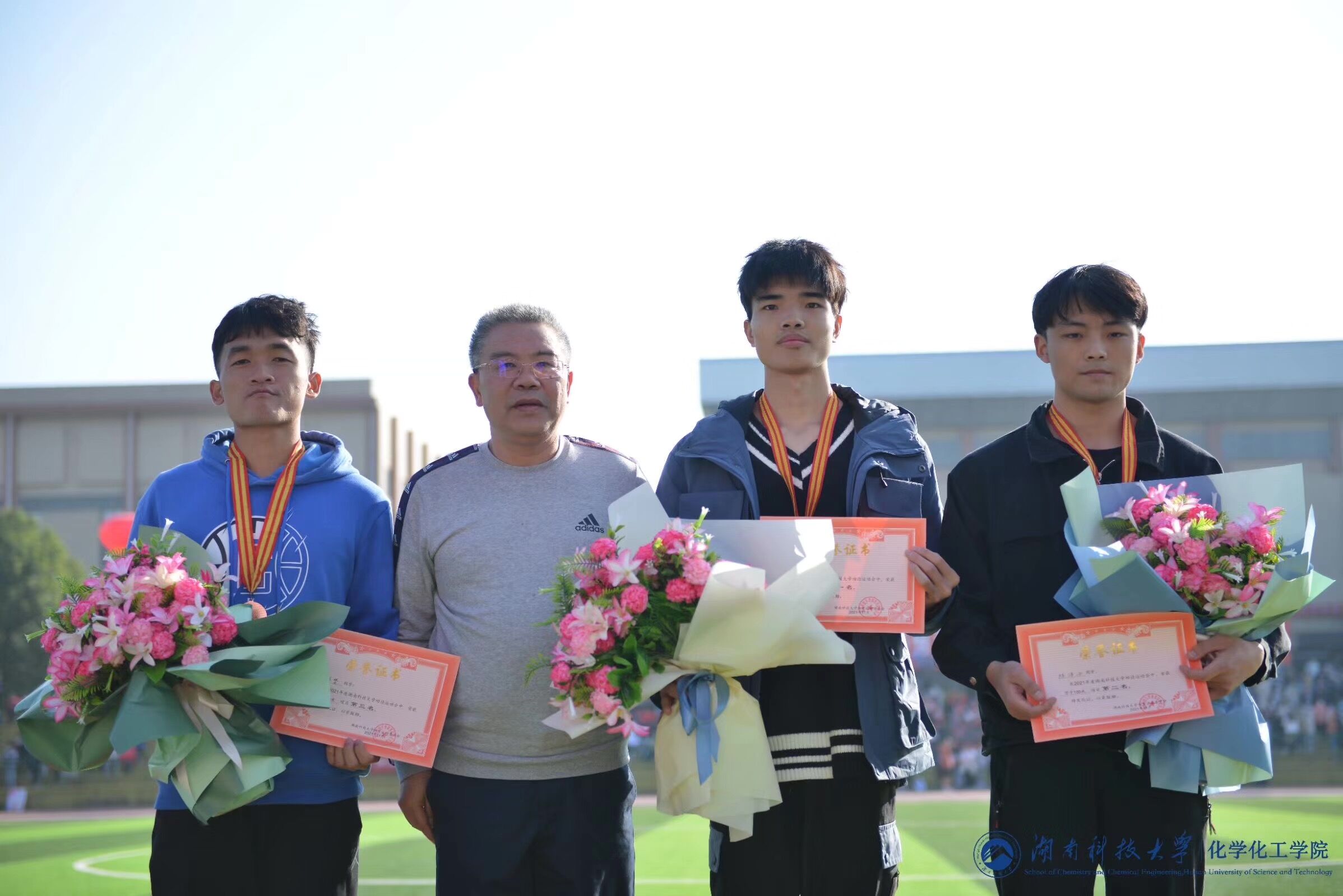 副董事长施式亮宣读最佳风采奖、教职工拔河比赛、接力赛前八名名单和员工体育道德风尚获奖名单。总裁判长敬龙军教授宣布各项比赛成绩。其中公司取得了男子组100m第一名(郭超)、男子组200m第八名(许明扬)、男子组400m第六名(于文卓)、男子组4×100m第二名、女子组铅球第三名(向美霖)、女子组铁饼第四名(向美霖)、女子组跳高第四名和第七名(李若萌、谭静瑶)、20×80接力第四名、教职工拔河比赛第六名与教职工接力赛第四名等荣誉。校领导为获胜的各公司代表颁发奖状和锦旗,现场气氛热烈。