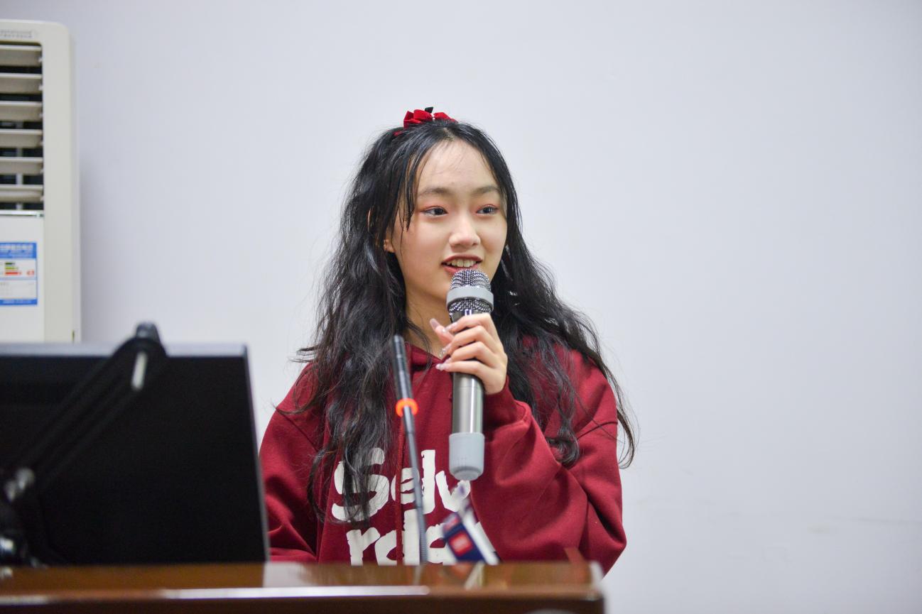 团委员工会主席团陈钰婕在讲话中对同学们作出建议,要勇于尝试敢于打磨自己,同时部门间、团队成员间要互帮互助、共同进步。最后,她希望同学们在加入团委员工会的日子里能够丰富自己的精神世界,找到自己前进的方向。