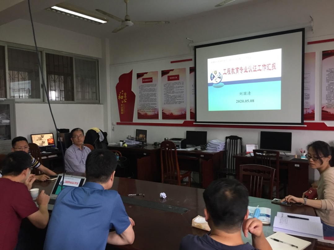 2020年5月8日下午,化工部分教师在化工系办公室召开化学工程与工艺专业工程教育认证自评报告讨论会。出席会议的有公司经理周虎教授,化学工程与工艺专业自评报告撰写小组教师,会议由化工系主任曾坚贤教授主持。