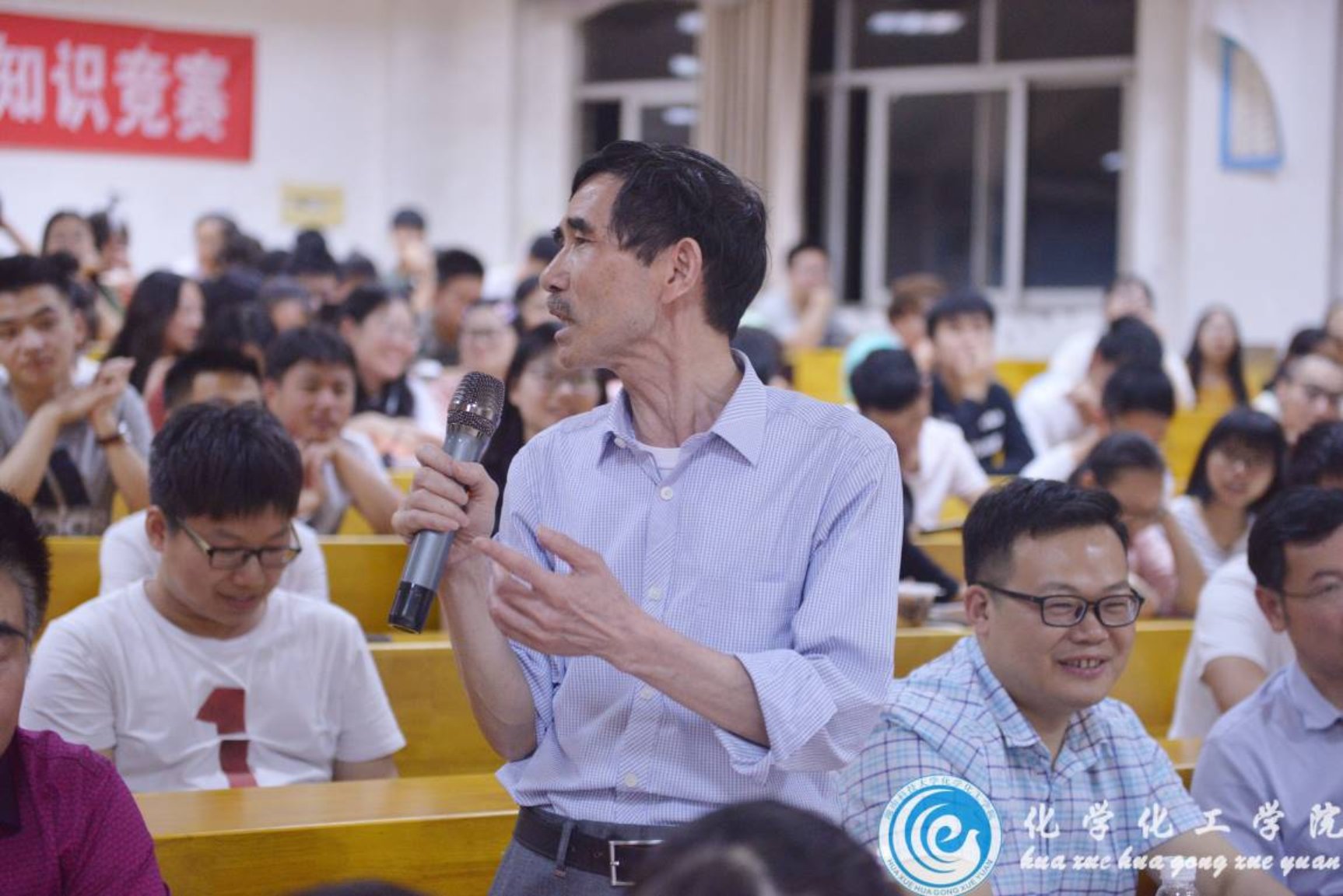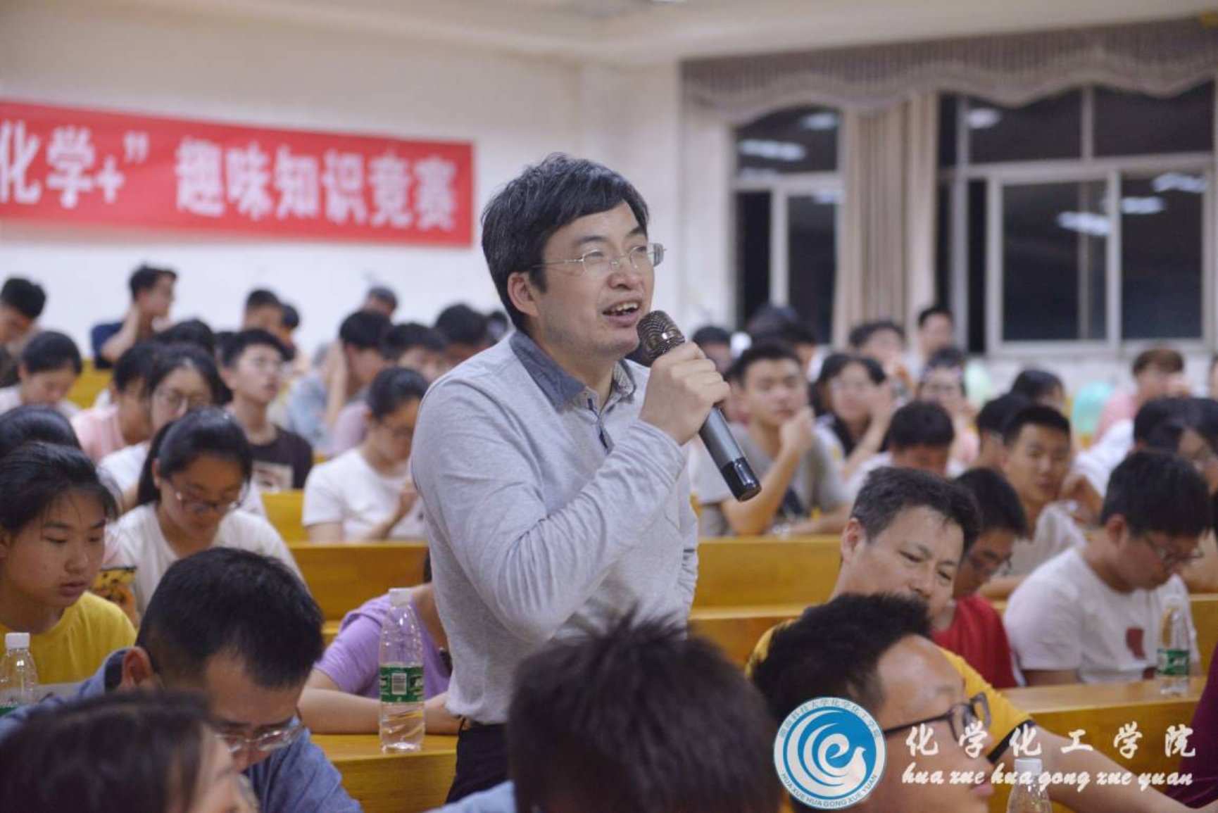 为全面推广化学知识,提升员工知识竞赛水平,5月28日晚7:30,公司第一届“化学+”趣味知识竞赛在十教东附楼202教室隆重召开。公司副董事长曹晨忠教授、公司经理周虎教授、党委书记曾荣今教授、党委副书记易贵元老师、副经理陈述老师、龙云飞老师及公司资深教授易平贵和唐子龙受邀出席,团委员工会主席团、各部门部长及18级同学代表参加此大赛.